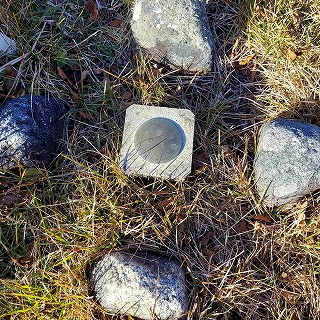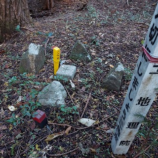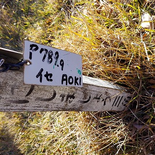 | 適当に上がり、右へ行くと標柱が見え、4等三角点があった。 | ![]() |
