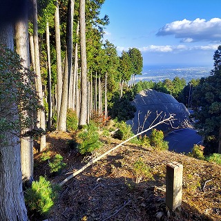 | 車に戻り戻り、先を走ると次の三角点がある所にきた。 少し手前に広い駐車場があった。 この辺りにはこうした駐車場が多数あった。展望のためだろう。 |