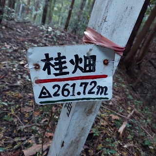 さらに下って送ると、左写真の辺りに4等三角点 点名「桂畑」があるはずだ。 |