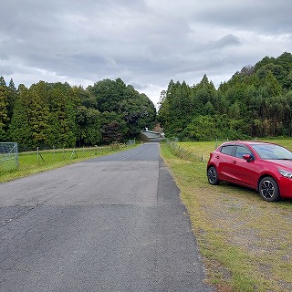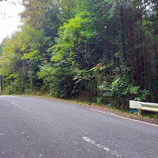 三角点のある峠あたりの道路を北へ100mほど来て左写真のスペースに停める。 |