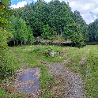 | すぐに農道の分岐がある。 私は左へ行った。実はここに来たときに車で右へ進んでみたのだが、適当な取り付き場所がに見あたら当たらなかったのだ。 |
