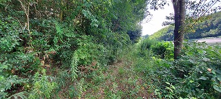 右写真の辺りから左の山に取り付く。 蜘蛛の巣が多い。 |