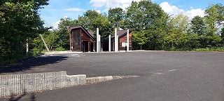 登り切った先に写真の様な駐車場とトイレがあった。 先には高い展望塔があった。 |
