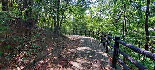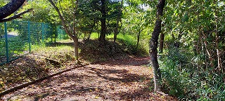 左写真は水道施設である。 帰りはフェンスに沿って入口に出た。 行きは舗装路を反時計回りに下った。 |