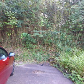 伊賀市の希望ヶ丘西1丁目住宅団地の西端の民家の突き当たりに停車。 ここから正面の薮に取り付く。 蚊取り線香を用意した。 |