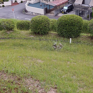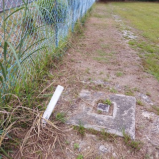 次いで同じ団地の南西にある「つつじヶ丘南」4等三角点である。 円形の水道タンクのそばのようだ。 フェンスの中かと思ったが外にあった。 フェンスに沿って近づいた。 |