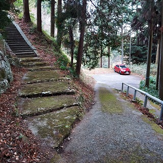 | 右写真まで車で上がり、駐車して身支度して舗装路を上へ歩く。 | ![]() |