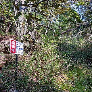 3番目は、ため池の南ある点名「市部」である。南からの林道を走ってくるとため池の南隅に違法投棄禁止の看板があった。 ここに駐車。蚊取り線香を持って出発。フェンスの横から楽に入れた。 |
