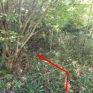 雑草は入口の50mほどで元林道が凹地の様になっている。 歩きにくいことはない。 |
