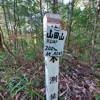 三角点があった。3等三角点「神戸」 イセAOKIさんのプレートが標柱にくくりつけてあった。山田山と書かれていた。 ピストンで戻った。 今日はたくさん見つけられて楽しかった。 |