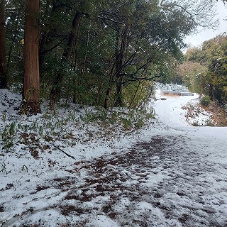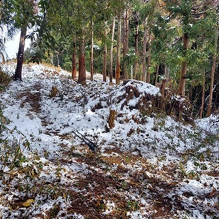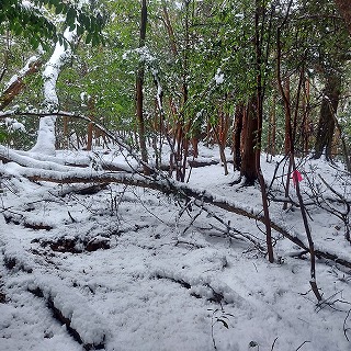 距離は短いのだが、積雪が増えてきた。 久しぶりの雪上歩きだ。 |