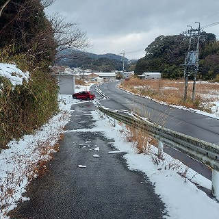 | 次は、亀山JCTの西にある3等三角点である。 林道の入口の倉庫前に駐車。 |