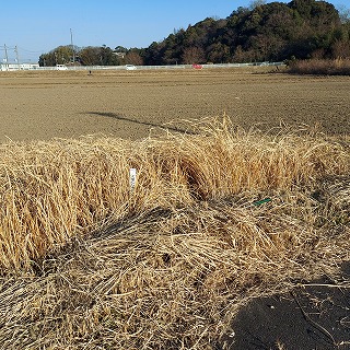 続いて4等三角点 点名「菅内」である。 たんぼ道の角に標柱が見えた。 |