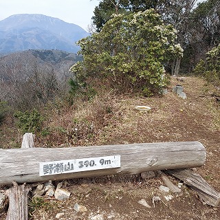 | 上写真の休憩ポイントから北を見ると野瀬山の山頂が見える。ずいぶん遠くに見えるのだが。 | ![]() |