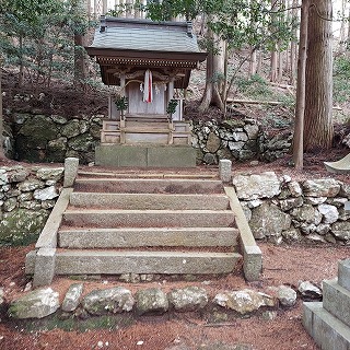 案内図の緑の道を通って、植林の中を通って神明神社に着く。 その下には天満宮があった。 |